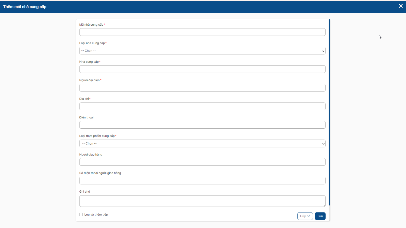 - Bỏ trống các trường bắt buộc khi click button Lưu hệ thống đưa ra thông báo + focus vào trường lỗi cụ thể