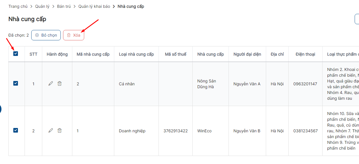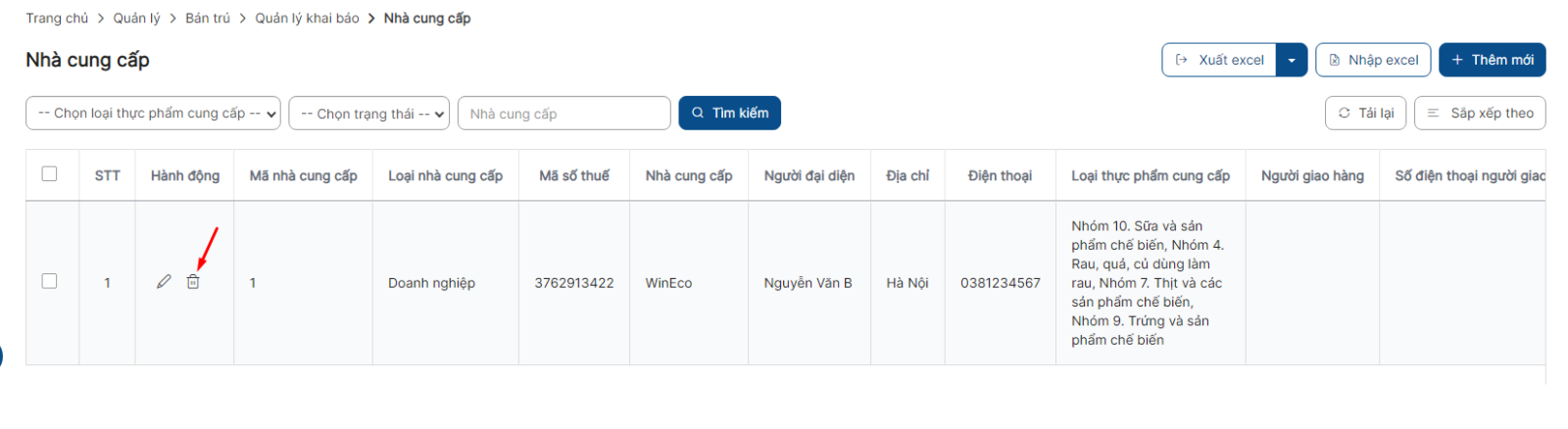 + Click “Xóa” thực hiện xóa bản ghi thành công
