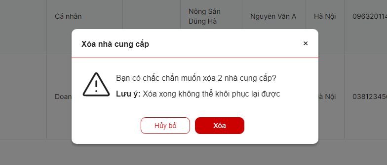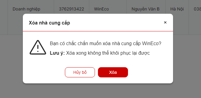 + Click “Hủy bỏ” hủy bỏ thao tác xóa