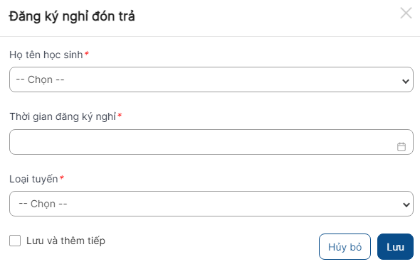 - Chỉ thêm mới được bản ghi khi học sinh đã được xếp trong lịch đưa đón