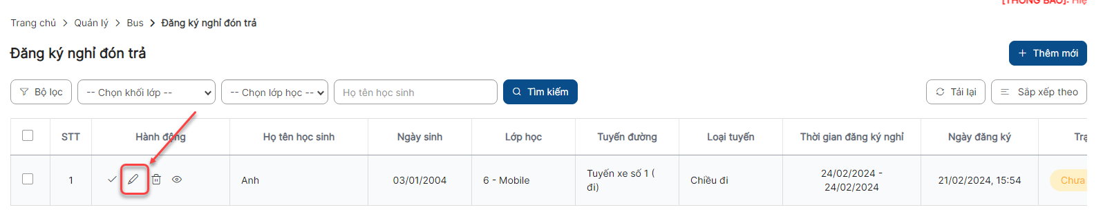 Bước 1: Danh sách > Click icon Chỉnh sửa