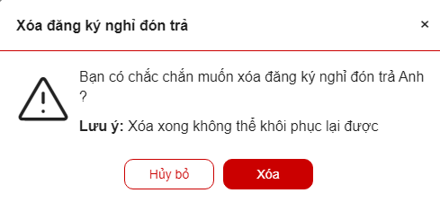 - Click “Hủy bỏ” hủy bỏ thao tác xóa