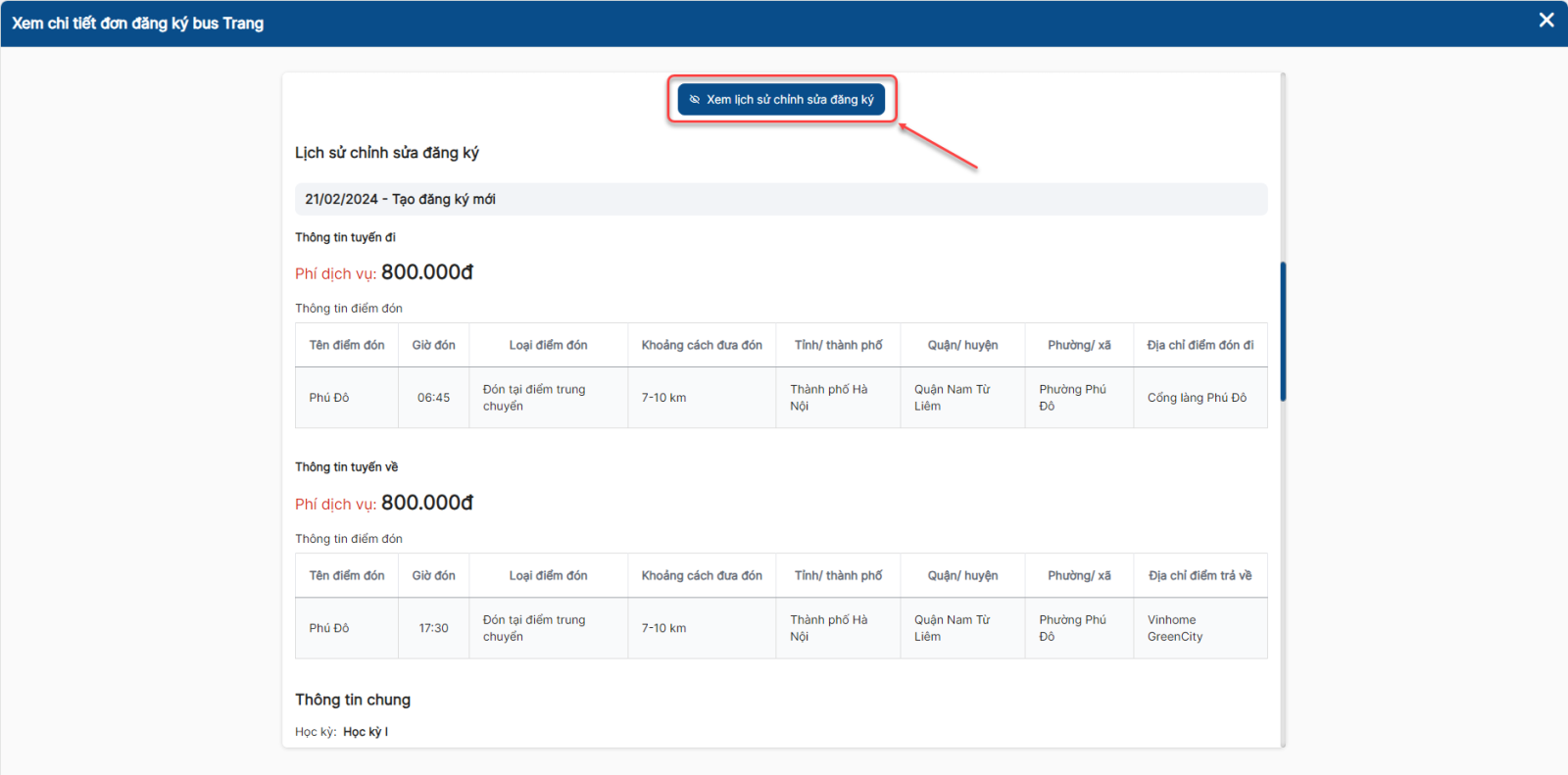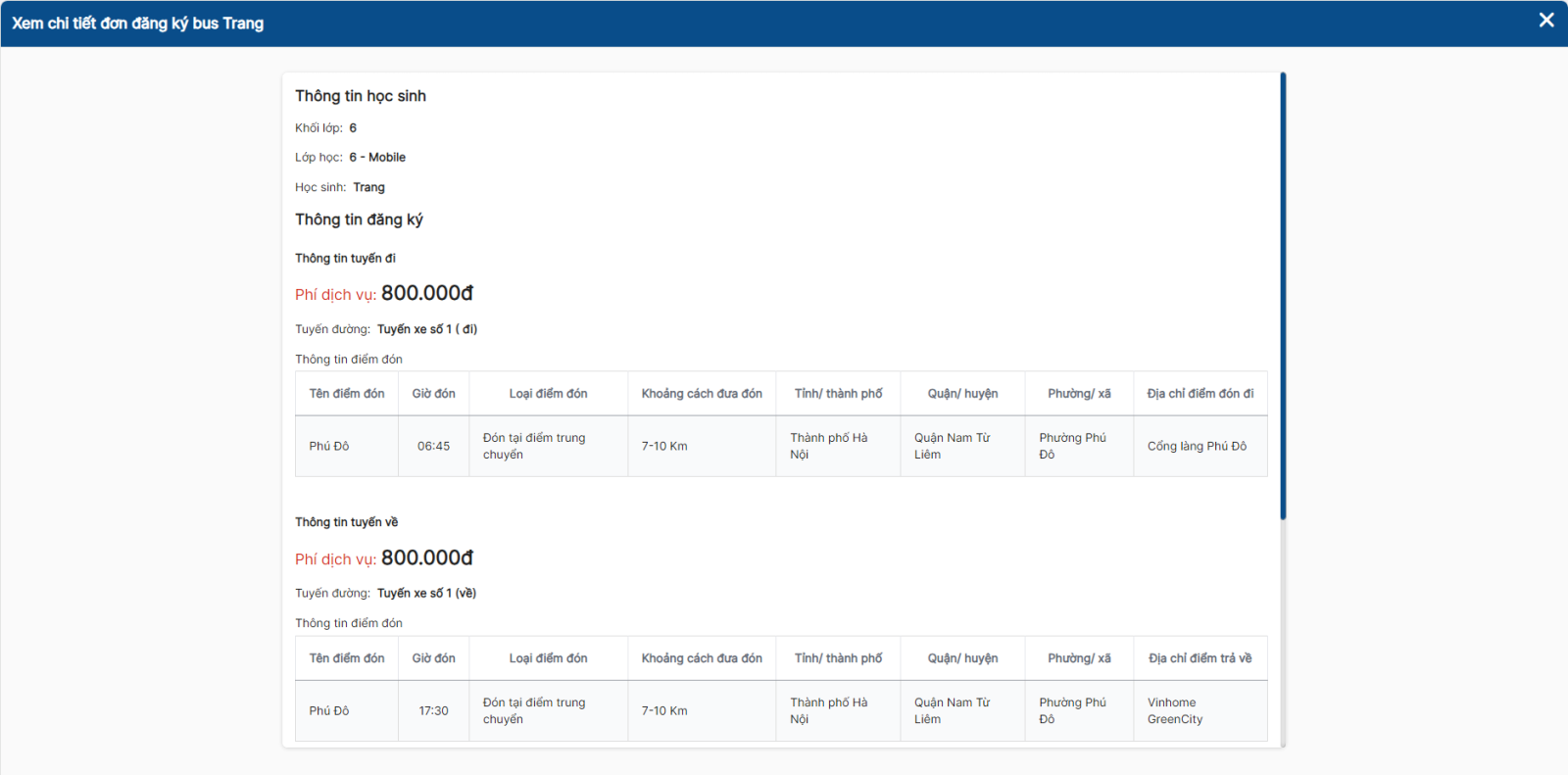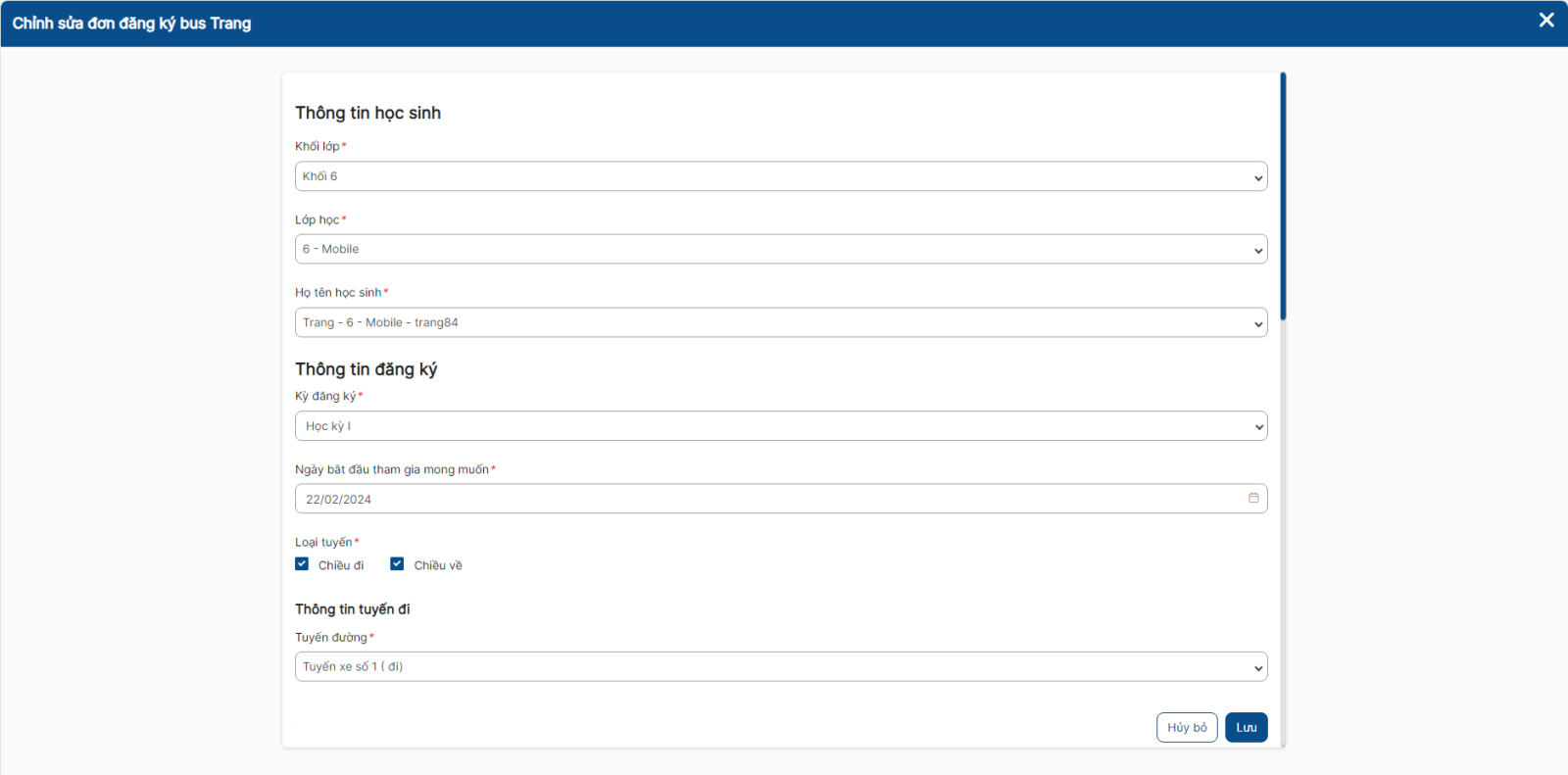 - Giáo viên chủ nhiệm chỉ có thể đăng ký bus cho học sinh thuộc lớp mình chủ nhiệm
