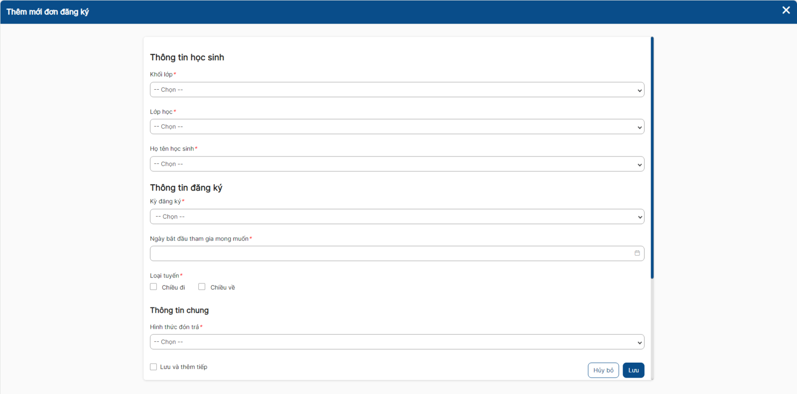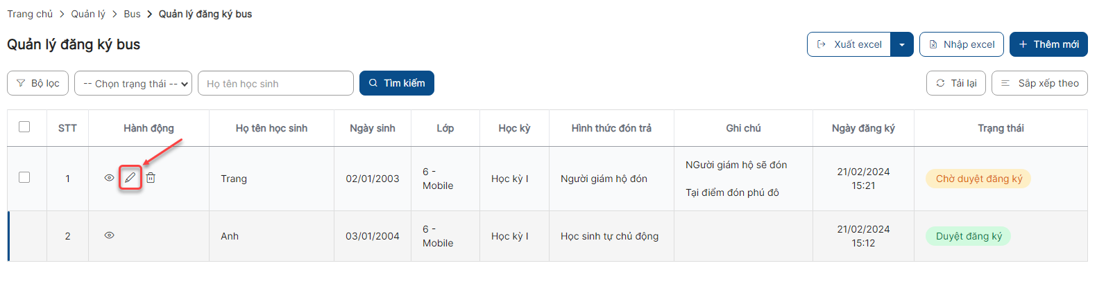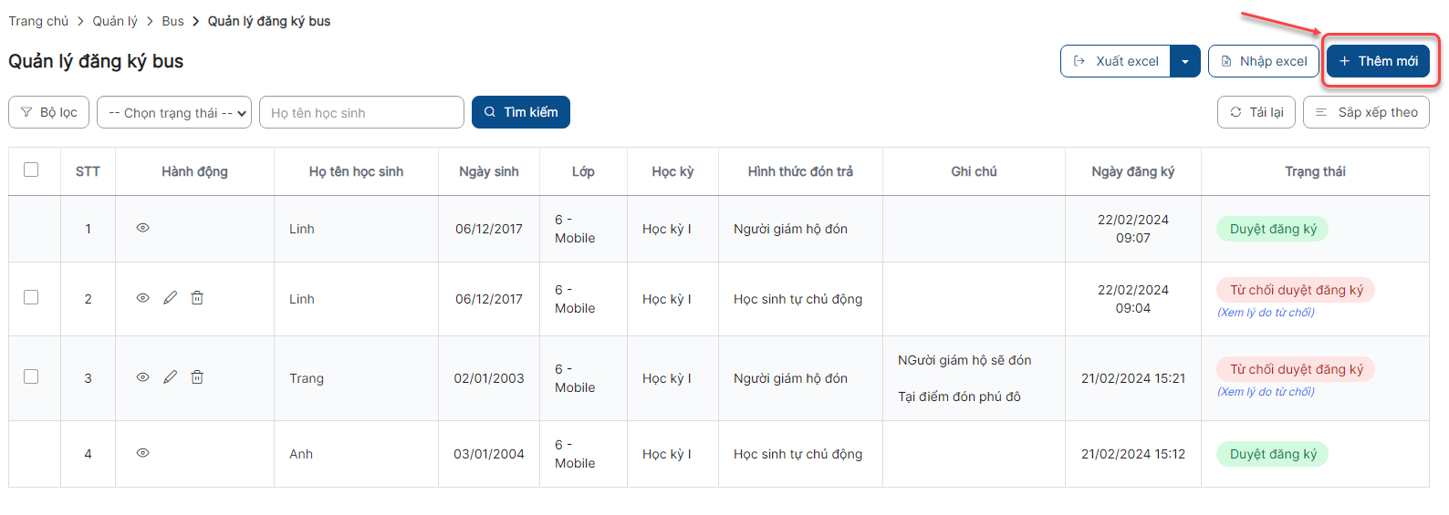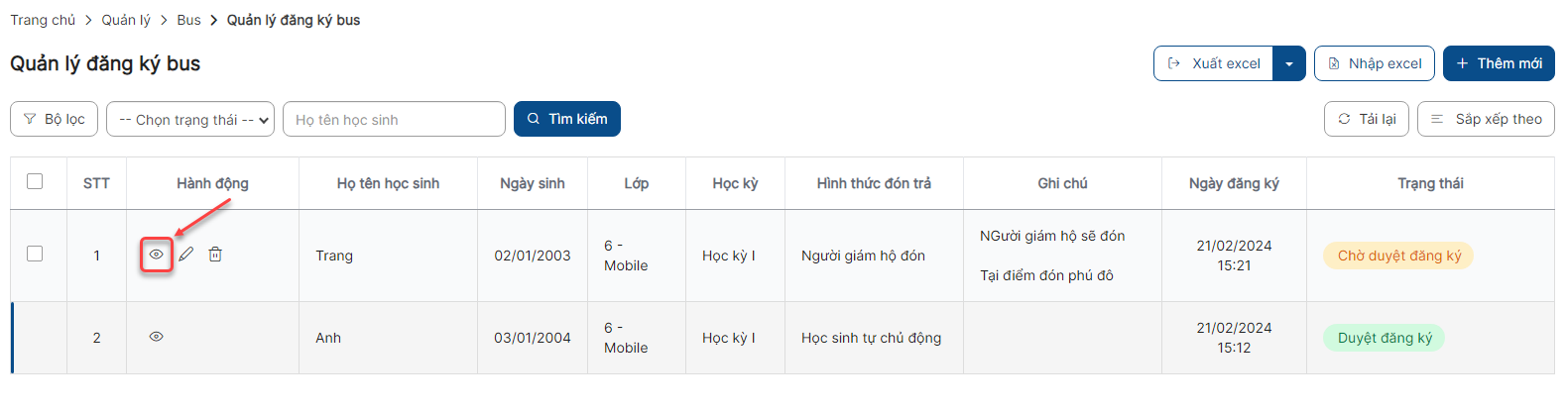 - Giáo viên chủ nhiệm chỉ có thể đăng ký bus cho học sinh thuộc lớp mình chủ nhiệm