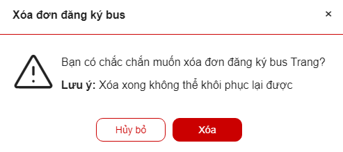 - Click “Hủy bỏ” hủy bỏ thao tác xóa