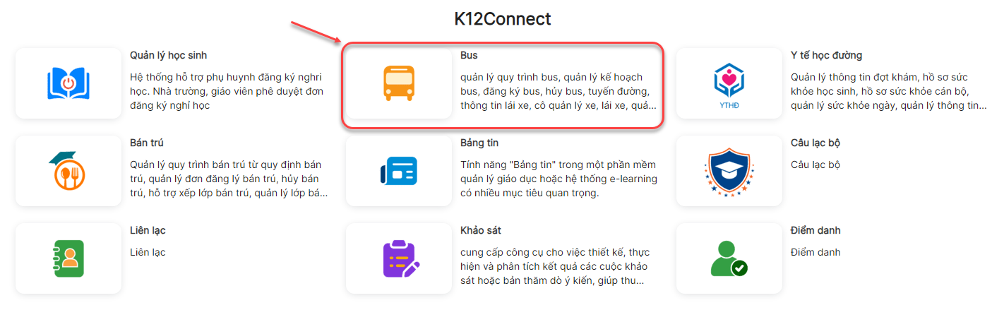 Bước 2: Trang chủ > Click module Bus
