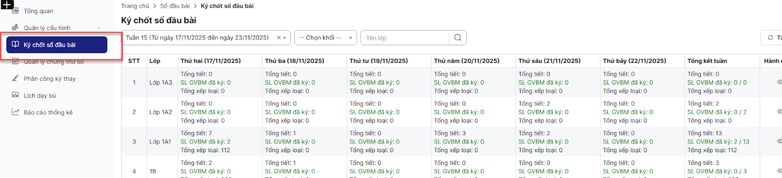 Ký trong ngày: chỉ cho phép ký tiết học trong ngày