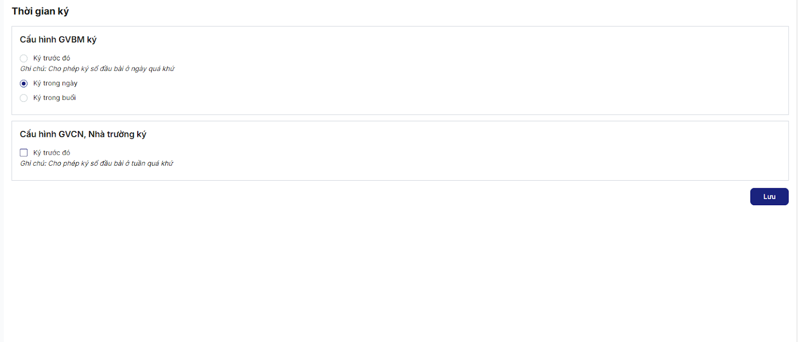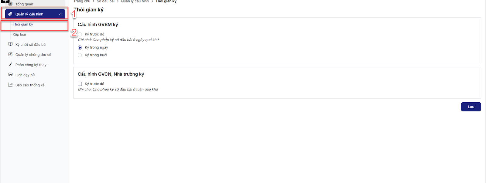 Bước 2: Thực hiện chọn option > click Lưu để lưu cấu hình thời gian ký