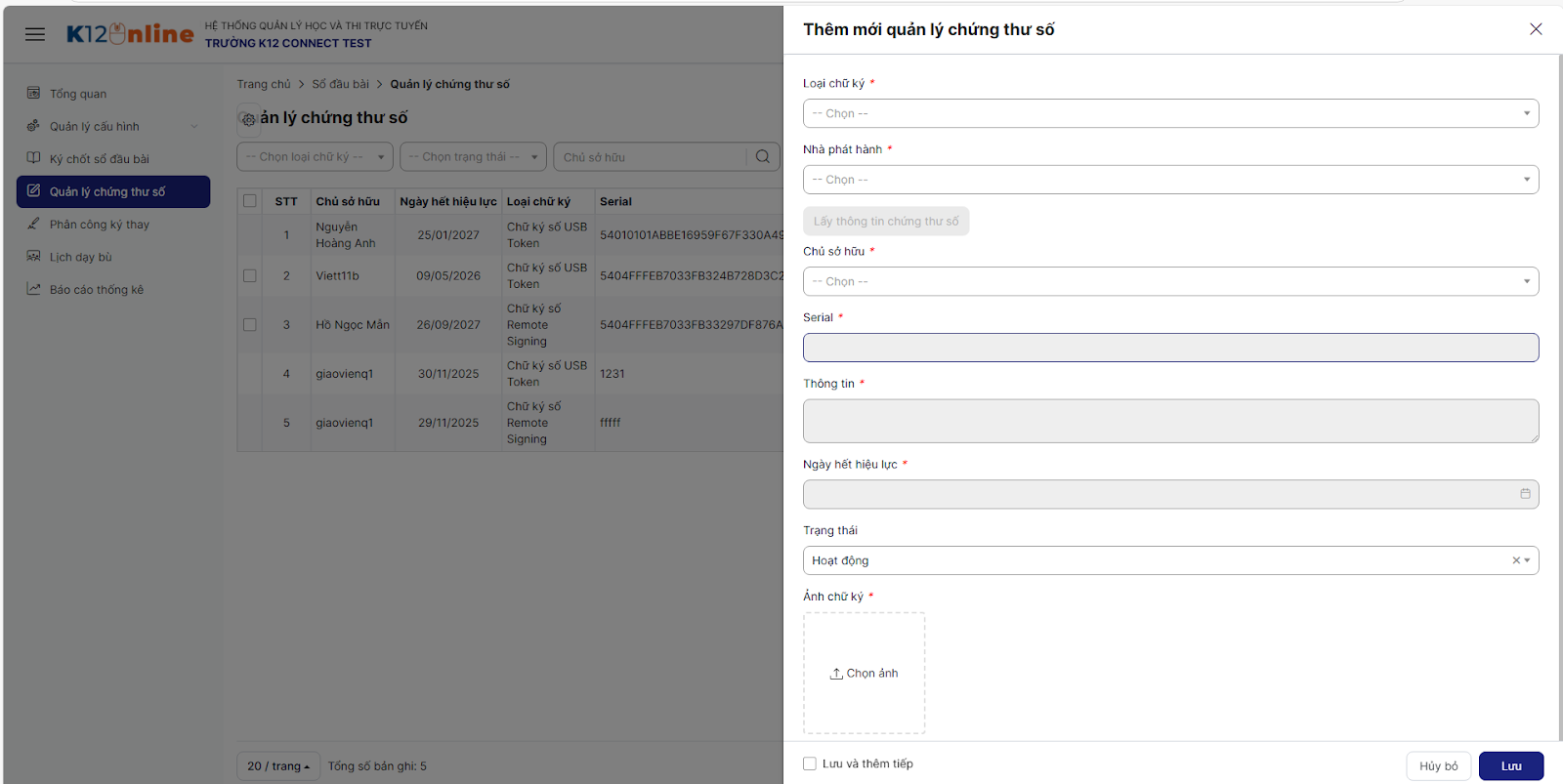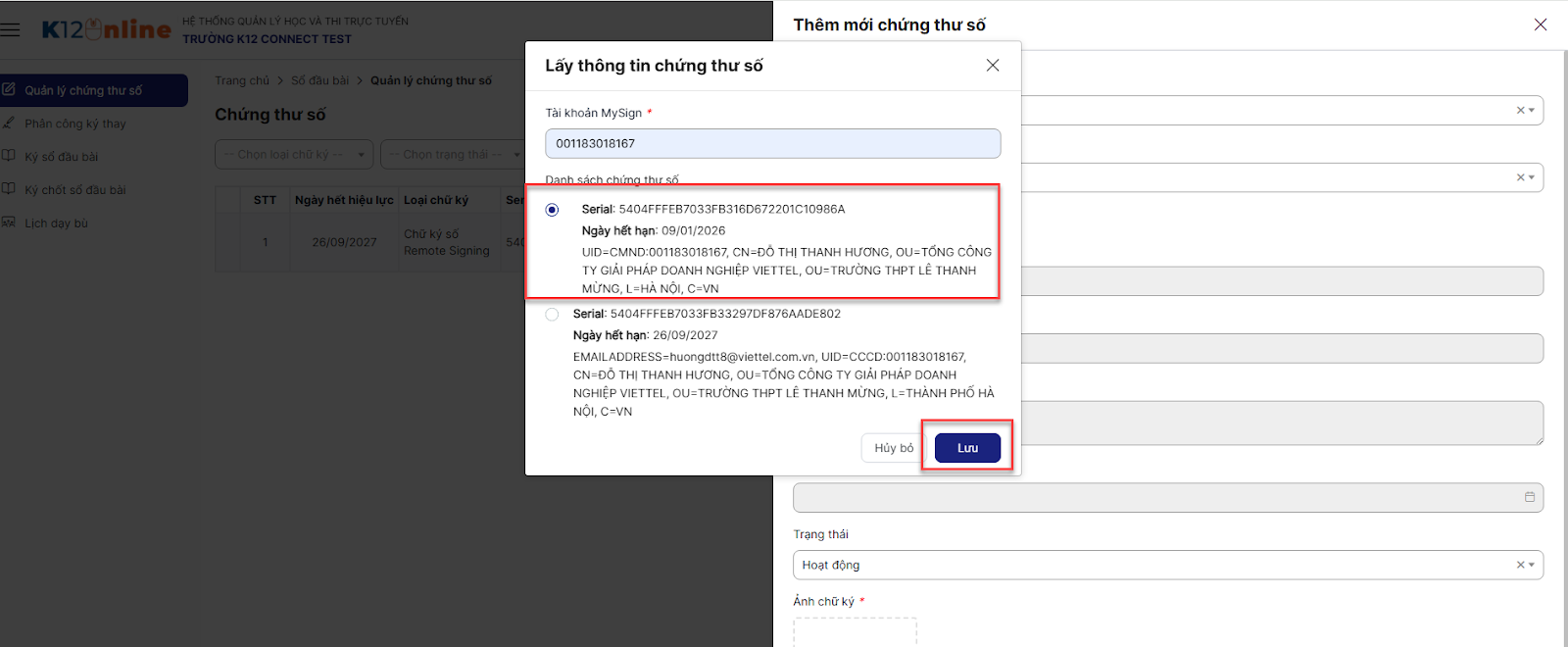 2.3. Khai báo chứng thư số_Tài khoản giáo viên