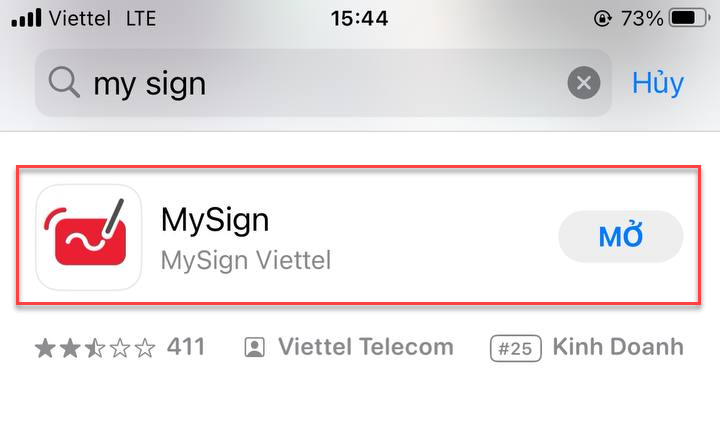 Bước 1: Vào App store/CH play: tìm kiếm app Mysign