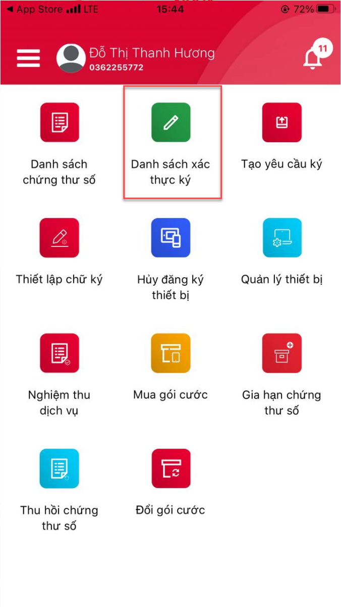 Bước 4: vào Danh sách xác thực ký để xác thực yêu cầu ký