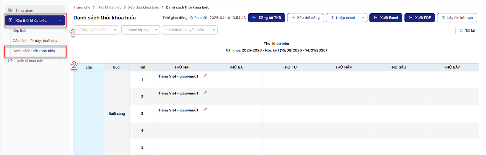 2.1.2.3. Tạo thời khóa biểu