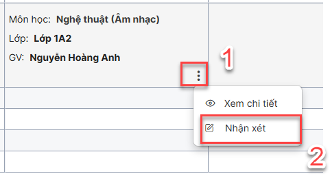 Bước 1: click icon ba chấm bản ghi Đã nhận xét > click GVBM ký