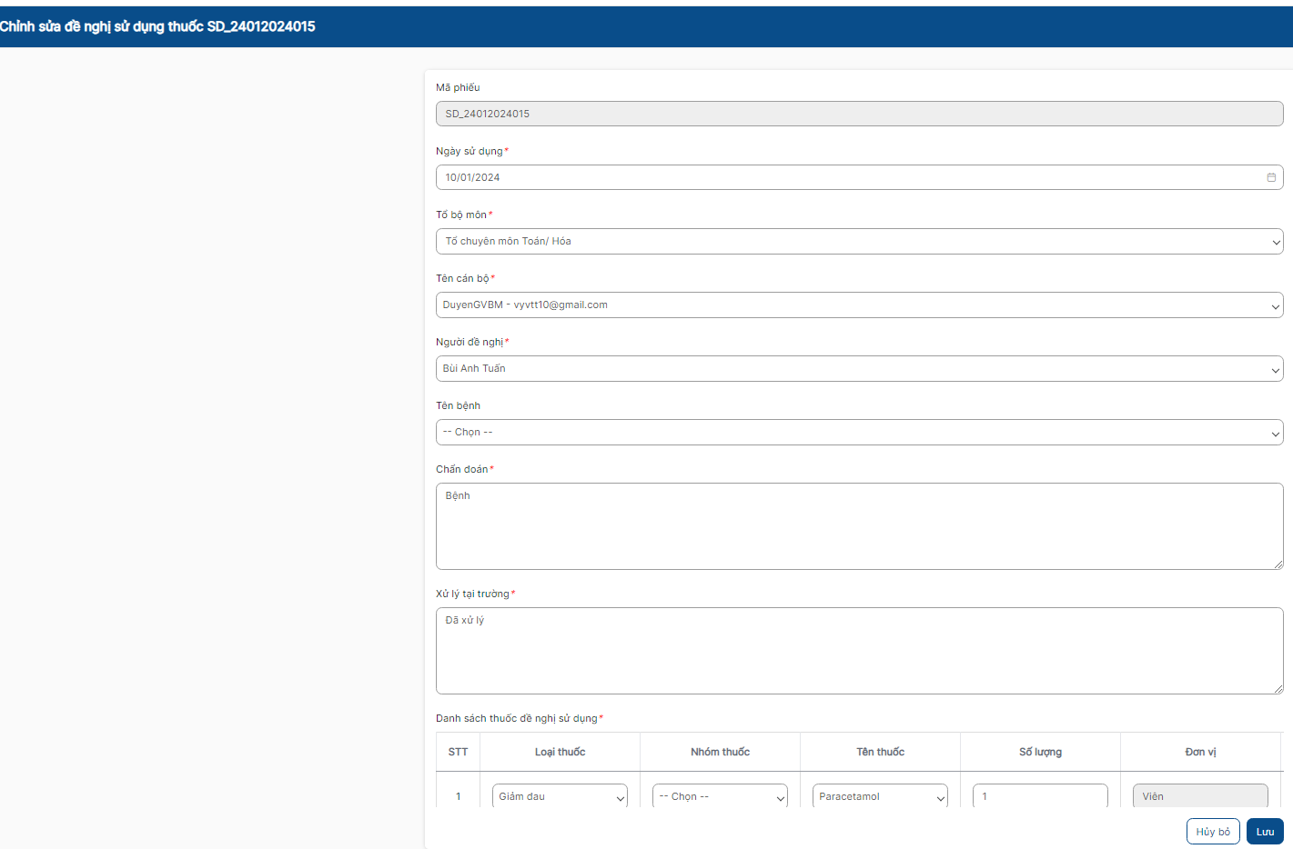 2. Chỉnh sửa hủy thuốc