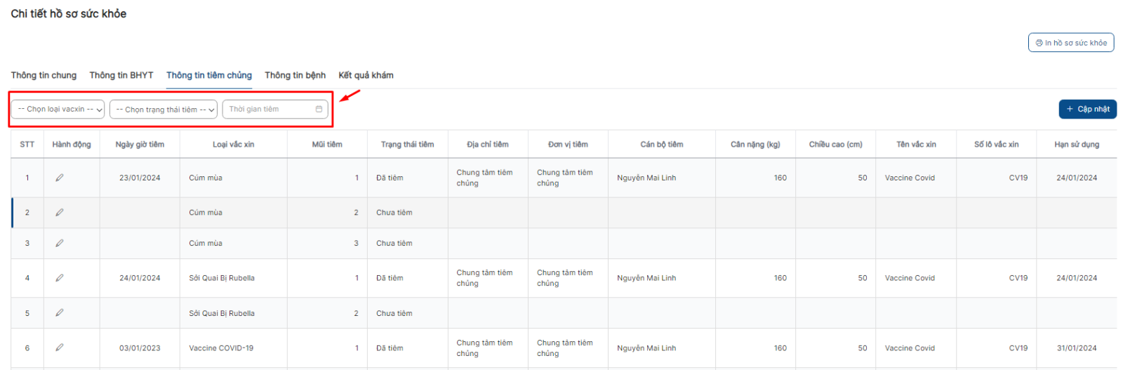 3.2.1. Cập nhật thông tin tiêm chủng